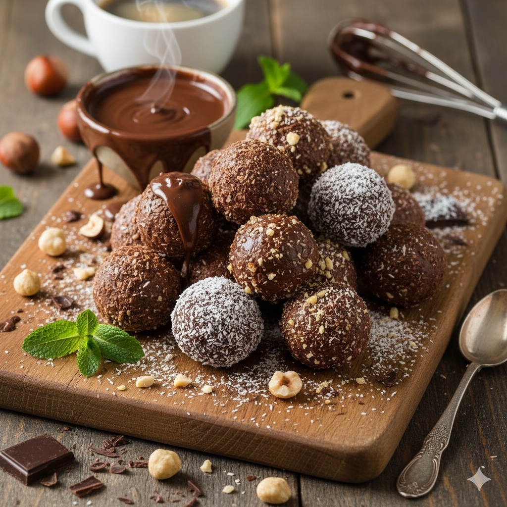 Te małe, słodkie kuleczki to prawdziwa rozkosz dla miłośników czekolady i chrupiących wafli. Idealne na deser, do kawy, jako przekąska na imprezie lub słodki prezent. Połączenie gorzkiej czekolady, chrupiących wafli i kokosowych wiórków sprawia, że każdy kęs jest pełen smaku i tekstury. Dla dodatkowego aromatu możesz dodać posiekane orzechy, bakalie lub odrobinę skórki pomarańczowej.